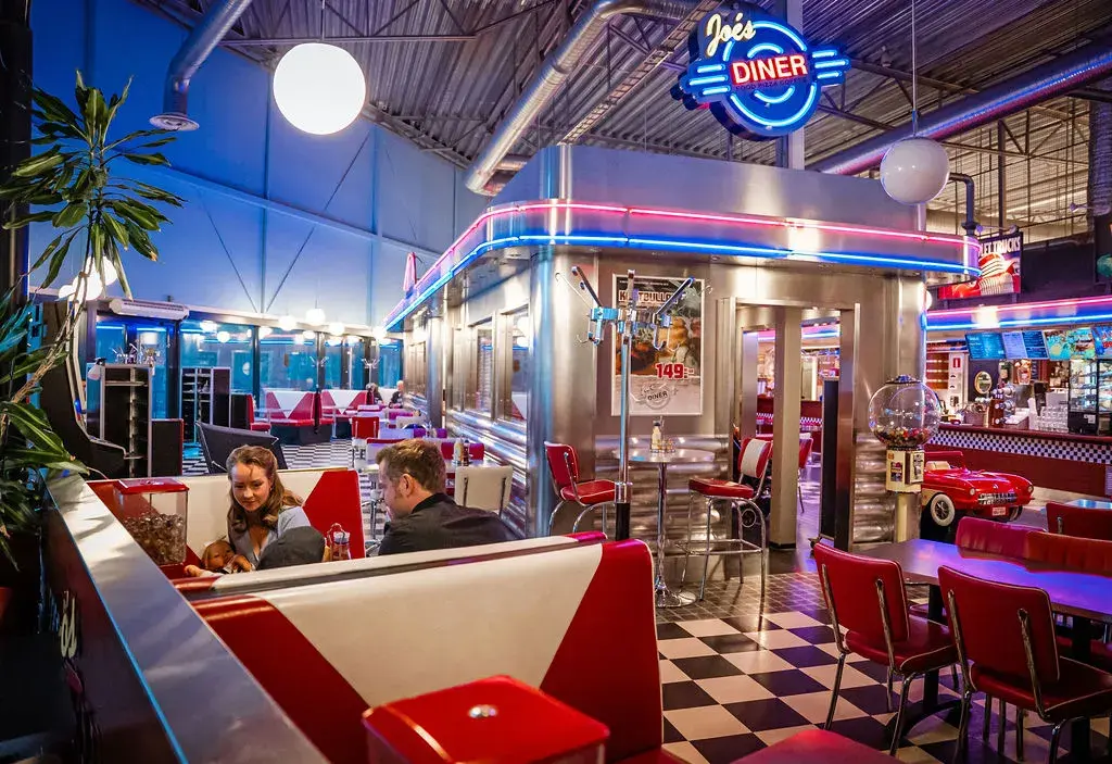 Joe´s Diner har alltid dagens lunch med ett kött och ett fiskalternativ. Vi har dessutom mat som passar alla så som goda matiga smörgåsar, hamburgare (amerikanska), kötträtter, bakta potatisar, barnmenyer med bla pannkakor, lite olika kakor/desserter mm Något för alla!