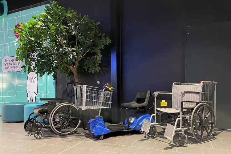 Vi vill att alla våra kunder ska kunna njuta av sin tid hos oss. Därför erbjuder vi på Töcksfors Shoppingcenter flera olika hjälpmedel, som rullstol, rullstol med handelskorg och en elektrisk martcart, så att även de som behöver extra hjälpmedel ska kunna shoppa utan problem. Vi gör det lättare för dig att röra dig fritt och bekvämt genom vårt shoppingcenter, där dessutom allt är på ett plan och det är en oval att gå runt i, så enkelt och översiktligt. Önskar du rullstol så kan du ringa till AVARN på +46702128937 så hjälper de dig vid ankomst till Töcksfors Shoppingcenter. Önskar du att låna en Martcart så kan du hämta ut nyckeln hos NumNum. Tips, parkera i mitten av p-huset och ta hissen upp, då kommer du direkt till området där alla hjälpmedel finns.