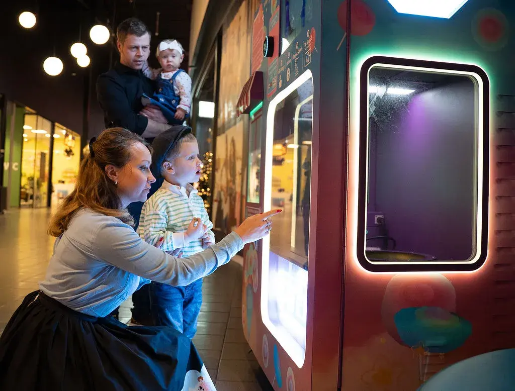 Vi har fått en cotton candymaskin. Gör din egen sockervadd i vår maskin, placerad mittemot Extratoys. Du börjar genom att trycka på skärmen och välja vilken form du vill ha. Därefter får du se hur maskinen spinner din sockervadd helt från start till färdig delikatess. När den är klar öppnas en lucka och du plockar ut din nyspunna sockervadd själv. Ät, njut och låt upplevelsen förgylla ditt besök. Varmt välkomna.